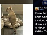 这位网友发送的是一张法斗的照片并配文到:“这是肯尼-史密斯穿着小脚裤跑到电视墙前的样子。”