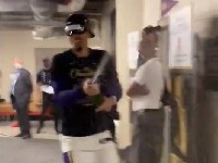 赛后,湖人球员分别开始庆祝,丹尼-格林更是戴着护目镜疯狂地喷洒着香槟。