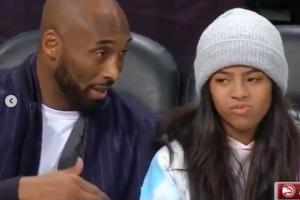 比赛中,转播画面也给到了科比在场边和Gigi亲切交流指导的镜头。