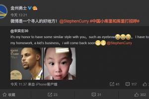 终于,这位叫“宋奕宏30”的微博用户用英文通过金州勇士的中文官方博主联系上了库里,宋奕宏30表示:“跟你有相似的风格是我的荣幸,比如咱的眉毛就很像。我现在得去做作业了,这是小孩子的工作,很快就回来~”