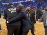 而乔丹突然从一旁跑出来紧紧抱住东契奇,随后与他握手相谈甚欢!