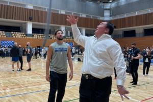 官方找来了日本第69任横纲白鹏翔与勇士队员进行互动,在下盘力量上鲜有对手的克莱这次一脚踢上了铁板,被大师频繁拿下~