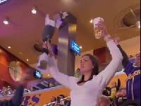 全场最佳!湖人女球迷用假肢装了一杯啤酒 现场边跳舞边喝🤣