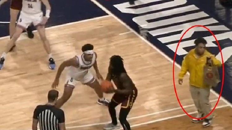 直播吧1月26日讯 正在进行的一场NCAA比赛中,一位外卖小哥进场引起热议。