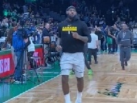 湖人记者Kyle Goon调侃道:“勒布朗热身时享受到了来自波士顿的友好问候。”