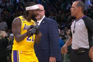 加时开始之前,贝弗利拿着相机向裁判抱怨上述那次漏判,裁判给了他一个技术犯规;