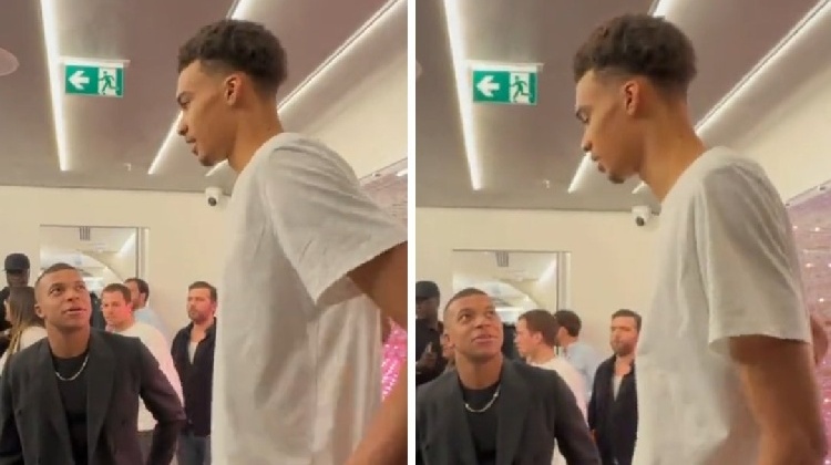 法国球星姆巴佩陪同准状元文班亚马观看今天的乐透抽签仪式
