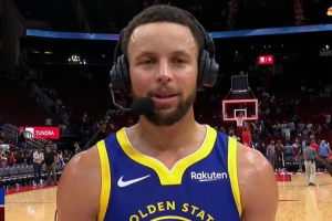 直播吧10月30日讯 NBA常规赛,勇士客场106-95战胜火箭。赛后勇士后卫库里在场边接受了记者的采访