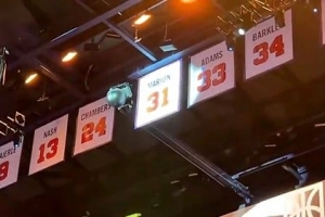 第10位退役球衣的球员是传奇13号史蒂夫-纳什,太阳队史在2004-12赛季最具旗帜性的灵魂人物;第11位,31号肖恩-马里昂,今日球衣正式退役;未来还会有第12位,32号阿玛雷-斯塔德迈尔,将在明年3月3日举行球衣退役仪式——他们是21世纪第一个十年最有特色的弄潮儿,7秒跑轰,颠覆性地视觉震撼,前所未有,开一代先河。