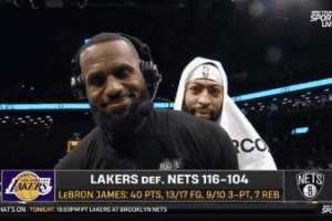 俩憨憨😆!詹姆斯接受采访时浓眉在身后搞怪 被发现后相视大笑