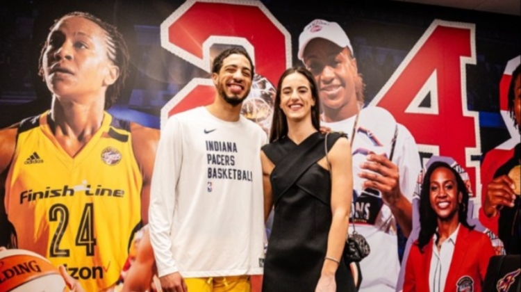 今天,克拉克抵达印第安纳,步行者当家球星哈利伯顿迎接她的到来。