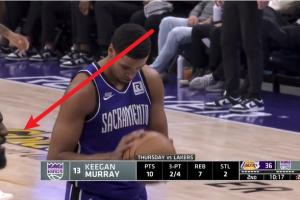 比赛第二节,基根-穆雷罚球期间,詹姆斯对场边一位国王球迷喷了一句垃圾话:“吸你TMD啤酒然后闭上你的臭嘴(sip your fking beer and shut the fu*k up)!”