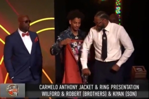 父子传承!甜瓜儿子基扬为父亲穿上名人堂夹克