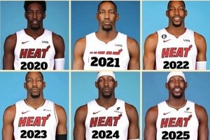 直播吧10月3日讯 热火自媒体晒出了一张阿德巴约生涯9年媒体日的定妆照拼图。