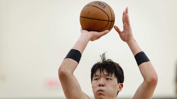 开拓者官方晒训练营第三天训练照:杨瀚森的双臂缠上了弹性绷带