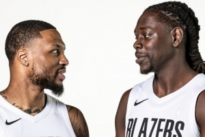 直播吧10月3日讯 ESPN晒出媒体日开拓者后卫利拉德和霍勒迪的合影,并配上了开拓者球迷的社媒:“想想一下2018年把这种照片给开拓者球迷们。”
