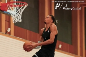 直播吧10月3日讯 马刺队官媒近日晒出了球队训练的视频,其中文班亚马快攻中秀了一把背扣。