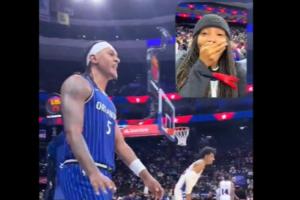 直播吧10月12日讯 昨日NBA季前赛,魔术128-98击败76人,在比赛中一位场边球迷大声喊班凯罗再得两分。