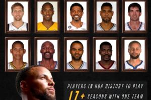 忠诚!库里即将成为历史第10位为“一支球队”效力17年的球员!