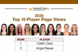 直播吧10月18日讯 数据网站Basketball Reference报道,本赛季赛季进行期间站内浏览量最高的WNBA球员TOP10,其中克拉克第一、里斯第二、阿贾-威尔逊第三。