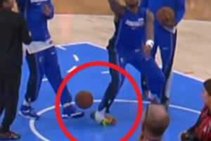 你这也太衰了😨PJ·华盛顿热身时跳起踩到滚来的球扭伤脚踝...