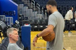 09双雄的爱!库里训练上脚哈登10代战靴 首次上脚阿迪品牌