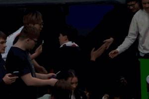 可惜没有登场机会!杨瀚森离场时在球员通道和球迷握手击掌