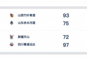 山西竹叶青酒 93-75 山东赤水河酒,山西女篮四人得分上双,布朗19分11篮板,翟若云19分,埃格博18分7篮板,惠特尔14分10篮板。山东女篮三人得分上双,帕克17分12篮板,杨衡瑜11分,考德威尔10分。