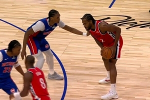 还是老辣!莱昂纳德弧顶观察奥萨尔防守直接拔起要了3+1
