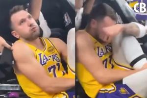 东契奇摔落后破口大骂:这傻X地板是哪个混蛋设计的?真见鬼!