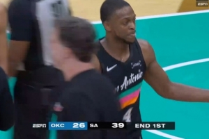 阵容残缺!雷霆首节26-39落后马刺13分 凯尔登独得12分