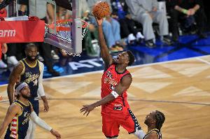 直播吧2月16日讯 美国新星队47-21击败美国星条队,夺得冠军。赛后,爱德华兹接受媒体采访,他表示击败世界队更让他开心。