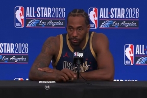 直播吧2月16日讯 NBA全明星正赛冠军赛,美国星条队21-47不敌美国新星队,小卡在比赛结束后接受了媒体采访。