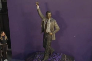 直播吧2月23日讯 今日湖人为球队传奇主教练帕特·莱利举行雕像揭幕仪式。