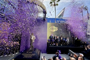 直播吧2月23日讯 今日湖人为球队传奇主教练帕特·莱利举行雕像揭幕仪式。