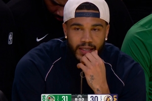 何时王者归来?塔图姆场边便装观战球队客场挑战湖人
