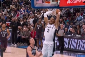一马当先!凯尔登反击接球 面对空篮起飞滑翔双手暴力灌筐
