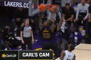 仙人指路!斯玛特送精准长传 詹姆斯篮下起飞双手空接暴扣