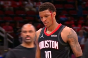 看着都疼!小贾巴里·史密斯脸上出血 但仍坚持作战