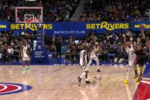 差之毫厘!坎宁安包夹下单臂随手一扔压哨三分命中 但回放先超时