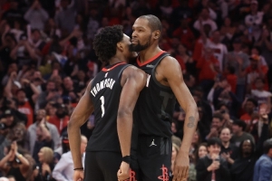 直播吧3月14日讯 NBA常规赛,火箭主场107-105险胜鹈鹕。赛后阿门·汤普森接受采访。