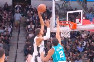 我只是微微一笑~文班亚马单打格威 转身蹦起左手单臂隔扣很轻松!