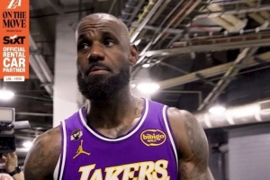 直播吧3月20日讯 今日,湖人官推晒出一段詹姆斯在昨日124-116客场击败火箭赛后的球员通道感言。