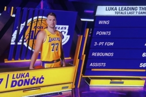 东契奇7连胜期间爆揽267分65板56助+40记三分 均为全队第一!
