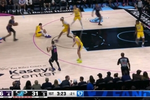 被里夫斯踢到了!东契奇直接摔倒地上 随后一瘸一拐的回替补席