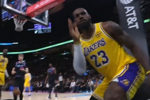 摆个帅pose!詹姆斯高速空切 被拉拽后超高擦板上篮依然2+1!