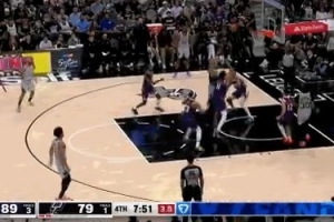 吓人!尚帕尼送抛传 文班起飞力压防守超长滞空单手空接打中