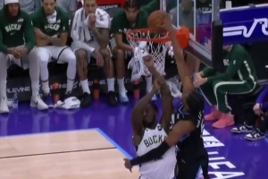 把替补席看嗨了!科迪威卷切直接起飞 单臂暴力隔扣普林斯!