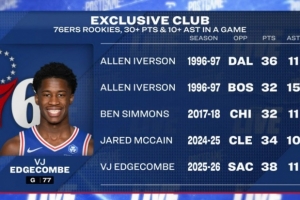 埃奇库姆单场30+10助队史新秀第4人!比肩艾弗森&本西&麦凯恩