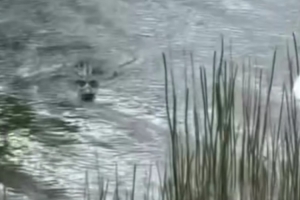 直播吧3月21日讯 今日据美媒“kollegekidd”爆料,湖人球星詹姆斯和布朗尼在打高尔夫时遇到鳄鱼,他当时正要去捡球。